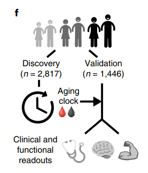 在這項研究中,Wyss-Coray等人嘗試建立了一個“蛋白質(zhì)組學時鐘”,在總共1379種隨年齡增長變化顯著的血漿蛋白中,使用了其中的373種來預(yù)測參與者的生理年齡。