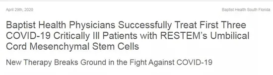 2020年疫情爆發(fā)以來,多個(gè)國(guó)家均將干細(xì)胞應(yīng)用到了新冠肺炎患者的救治當(dāng)中,并相繼取得積極地臨床療效。例如,根據(jù)今年4月美國(guó)的報(bào)道,3名新冠肺炎急性呼吸窘迫綜合癥患者接受了臍帶間充質(zhì)干細(xì)胞治療,成為了首批在美國(guó)FDA緊急批準(zhǔn)條件下接受這種療法的成功研究案例。