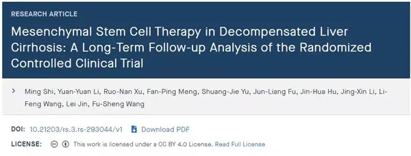 近日,王福生院士團隊在國際肝病學雜志(Hepatology International)發(fā)表的研究結果(預印本)顯示,臍帶干細胞顯著改善了失代償性肝硬化的肝功能及長期生存率。