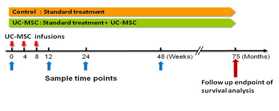治療組每間隔4周輸注臍帶干細胞,共3次。同時,兩組都接受常規(guī)治療,并接受隨訪。此次研究結果不僅和此前一樣令人滿意,也證實了臍帶干細胞的長期效果。