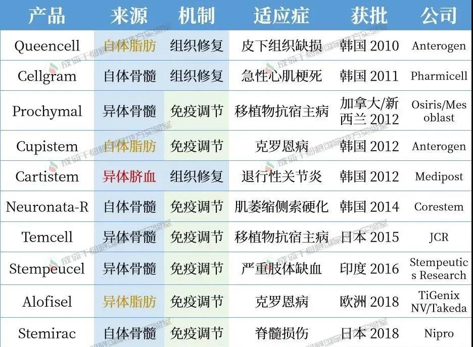 截至目前,有 10 種間充質(zhì)干細(xì)胞(MSC)產(chǎn)品在全球獲得批準(zhǔn)(參見(jiàn) 全球上市MSC藥物盤(pán)點(diǎn)),但沒(méi)有一款獲得 FDA 的批準(zhǔn)。目前的 MSC 產(chǎn)品根據(jù)其作用機(jī)制和批準(zhǔn)的適應(yīng)癥分為兩大類:組織修復(fù)和免疫調(diào)節(jié)。