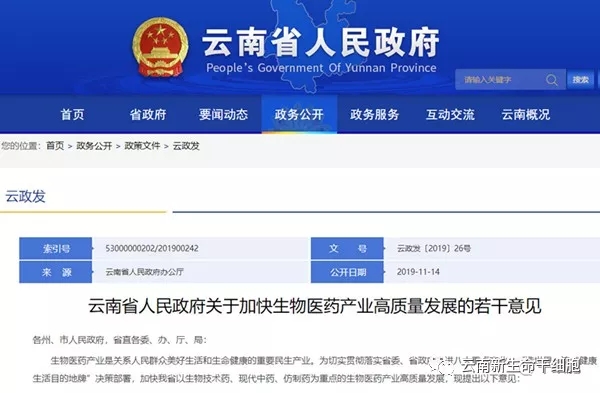 近日,云南省人民政府在官網(wǎng)正式發(fā)布《關(guān)于加快生物醫(yī)藥產(chǎn)業(yè)高質(zhì)量發(fā)展的若干意見》。意見中明確:積極發(fā)展以干細胞為重點的細胞治療產(chǎn)品。加強細胞產(chǎn)品應(yīng)用基礎(chǔ)研究和轉(zhuǎn)化研究,